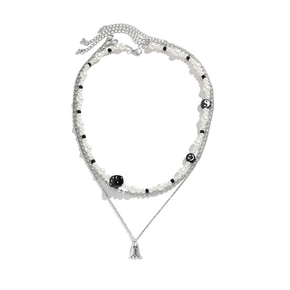 Novel fashion pearl with smiley face/dice design/simple rice bead chain/exquisite ghost pendant multi-layered design necklace set